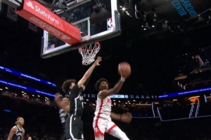 當(dāng)代MJ!阿門強(qiáng)突底線 面對(duì)兩人封堵空中漫步低手反拉桿瀟灑打進(jìn)