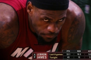 系列賽前5場(chǎng)比賽,熱火以2-3落后,儼然已經(jīng)在懸崖邊上。詹姆斯在G6火力全開(kāi),全場(chǎng)26中19,三分4中2,罰球9中5,得到45分15籃板5助攻,率領(lǐng)熱火以98-79擊敗凱爾特人,將系列賽拖至搶七大戰(zhàn)。
