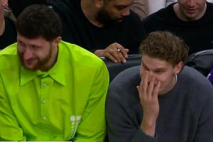 哈登空位三分三不沾!馬卡和弩機(jī)在場(chǎng)下笑起來了
