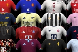 體育資訊1月2日訊 足球裝備網(wǎng)站footyheadlines透露26-27賽季由阿迪達斯設(shè)計的各隊球衣圖片,曼聯(lián)、阿森納、尤文、拜仁、皇馬等隊在列,主場球衣與第三球衣均使用阿迪達斯經(jīng)典logo,客場球衣上則使用三葉草logo。