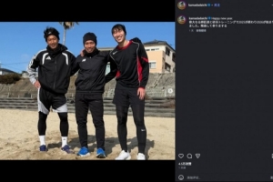體育資訊1月2日訊 水晶宮中場鐮田大地更新社媒,曬出自己與香川真司、長友佑都的合照。