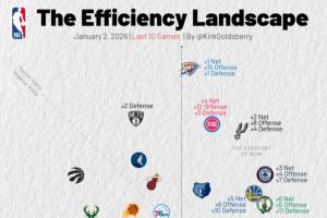 近十場效率:火金尼進(jìn)攻爆炸 雷網(wǎng)塞固若金湯 刺船領(lǐng)先 湖人倒數(shù)