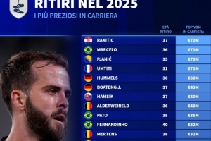 體育資訊1月3日訊 德國轉(zhuǎn)會(huì)市場統(tǒng)計(jì)了2025年退役球員的歷史最高身價(jià),并列出榜單,拉基蒂奇、馬塞洛、皮亞尼奇、烏姆蒂蒂7000萬歐居首。