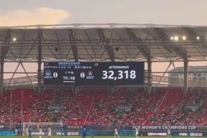武漢車谷江大女足vs奧克蘭聯(lián)現(xiàn)場觀眾人數(shù):32318人