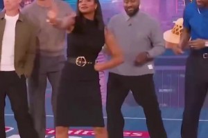 格里芬納什沃爾哈隊和女主持一起跳舞 沃爾已經(jīng)按耐不住