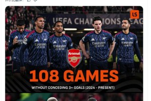 打破曼聯(lián)記錄!阿森納已經(jīng)連續(xù)108場(chǎng)比賽沒失球超過2個(gè)