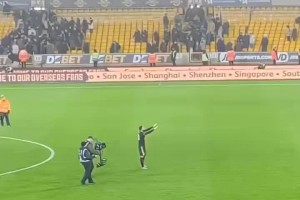 有情有義!庫尼亞在比賽結(jié)束后,向狼隊(duì)球迷揮手致意